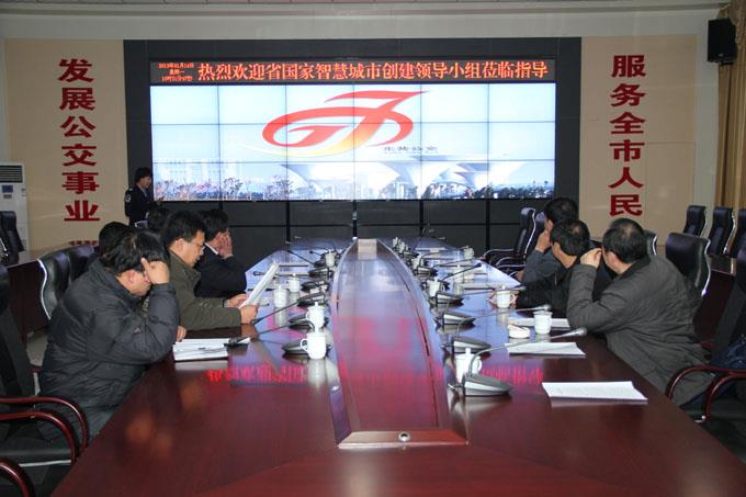 我市申報的國家智慧城市規(guī)劃綱要、實施方案等申報材料已經(jīng)通過初審,此次現(xiàn)場考察主要是考察我市三網(wǎng)覆蓋情況、數(shù)字化城市建設(shè)情況、智能交通建設(shè)情況、平安城市建設(shè)情況以及云計算中心建設(shè)情況。考察組來我公司主要是考察公交智能化建設(shè)情況,聽取了工作人員的現(xiàn)場講解演示及智能化公交建設(shè)情況匯報。