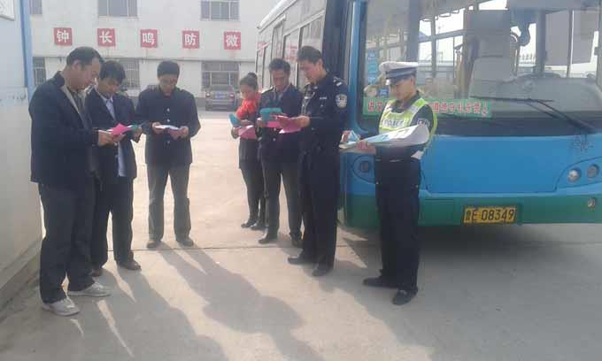 近日,市交警三大隊一中隊張信偉隊長帶領中隊民警一行三人,來到市公交公司汽車五隊交流指導車隊客運交通安全工作。 民警查看了車輛安全技術狀況和安全錘、滅火器等安全防護裝置,對車輛、駕駛員管理和安全制度、安全措施等檔案進行了檢查,并與駕駛員進行面對面的交流,發放了部分宣傳資料。通過車隊和交警一中隊的共建活動,極大的提高了駕駛員的安全意識,保證了車輛的安全運行,為乘客提供了更加安全和舒適的乘車環境。
