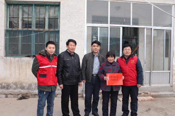 市公交公司職工韓學勇,在下派幫扶工作結束回到公司崗位后,依然不忘在幫扶期間長期資助的困難家庭,于2014年2月23日,組織東營義工,協調救助金5000元,個人捐獻物資500余元,對以前幫扶的小楊家村楊溜溜和一直資助的墾利郝家的蓋文龍進行了慰問救助。