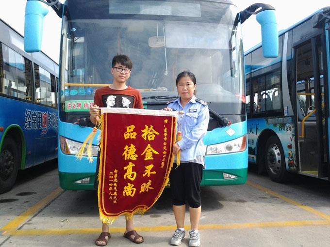 7月31日,鹿先生不慎將錢包遺漏在164路公交車上,于是急忙來到車隊尋找,該路駕駛員蘇愛軍將裝有1500元現金、身份證、銀行卡和工作證的錢包物歸原主,鹿先生非常感動,送來錦旗表示感謝。