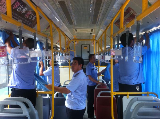 近日以來,天氣持續悶熱。為提高乘車舒適度,給乘客提供一個清涼的乘車環境,市公交公司汽車三隊“手拉手雷鋒小組成員”丁文美同志自己出資為車隊22輛新能源公交車全部安裝了藍色遮陽窗簾。