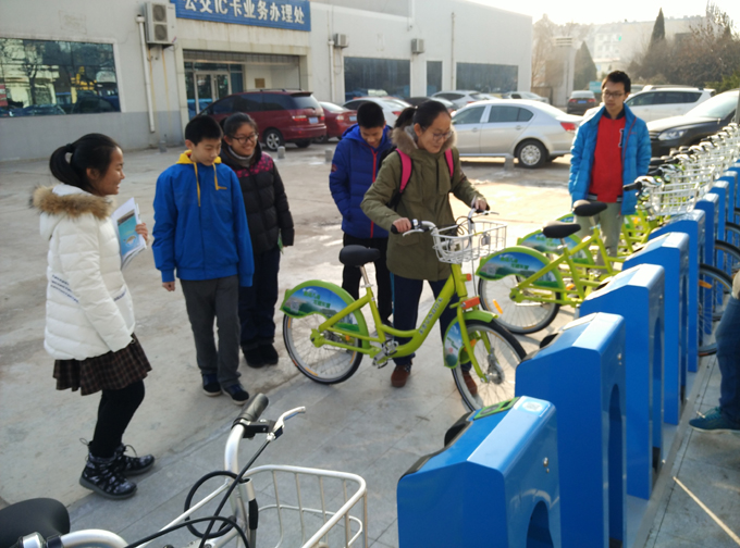 寒假伊始,市實驗中學的同學們來到市公交公司深入學習了解城市公共自行車租賃系統,在公交調度服務中心趙經理為同學們耐心講解了國內外自行車的發展歷史、東營城市公共自行車的特點以及城市公共自行車租賃系統的工作原理,還通過大屏幕給同學們系統的講解了城市公共自行車的調度指揮及運營服務流程,為了讓同學們有一個更加直觀且深入的認識,就帶領著同學們來到市公交公司站點,讓每一位同學都體驗了公共自行車的借還流程并在保證安全的情況下進行了騎行體驗。