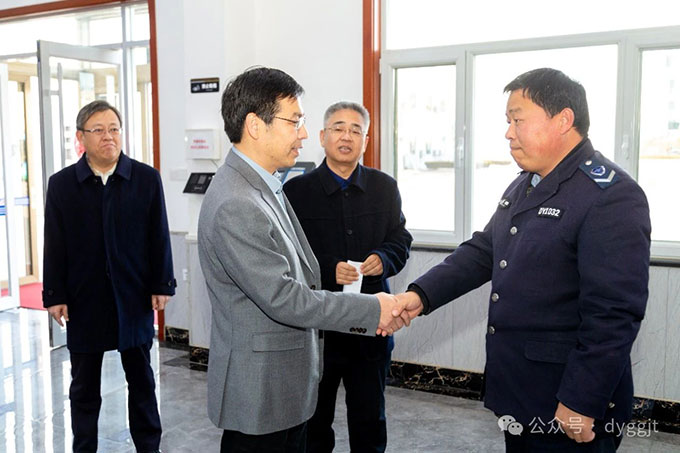 玉兔昂首辭舊歲,金龍?zhí)ご核妥8!?024年2月8日下午,農(nóng)歷年二十九,市城建集團黨委書記、董事長胥高遠一行輕車簡從,到市公交集團走訪慰問干部職工,向節(jié)日期間堅守工作崗位的干部職工致以新春的美好祝福。市城建集團黨委副書記張文生、市公交集團趙龍同志陪同。
