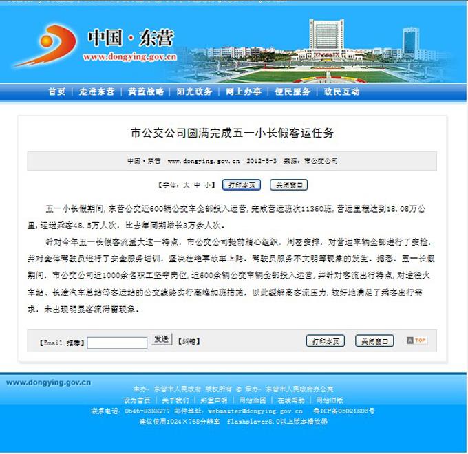 2012年5月8日東營市政府網(wǎng)站報道