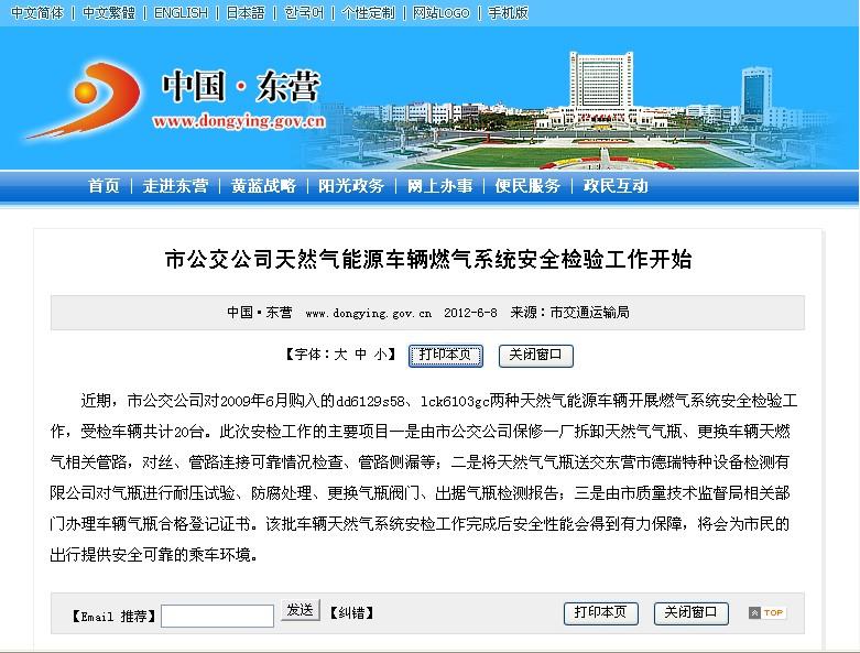 2012年6月8日東營市政府網站報道