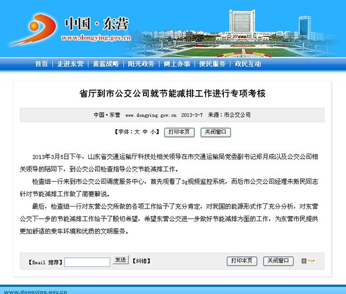 2013年3月7日東營市政府網站報道
