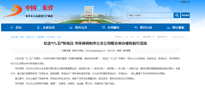 2016年6月6日東營市政府網站報道